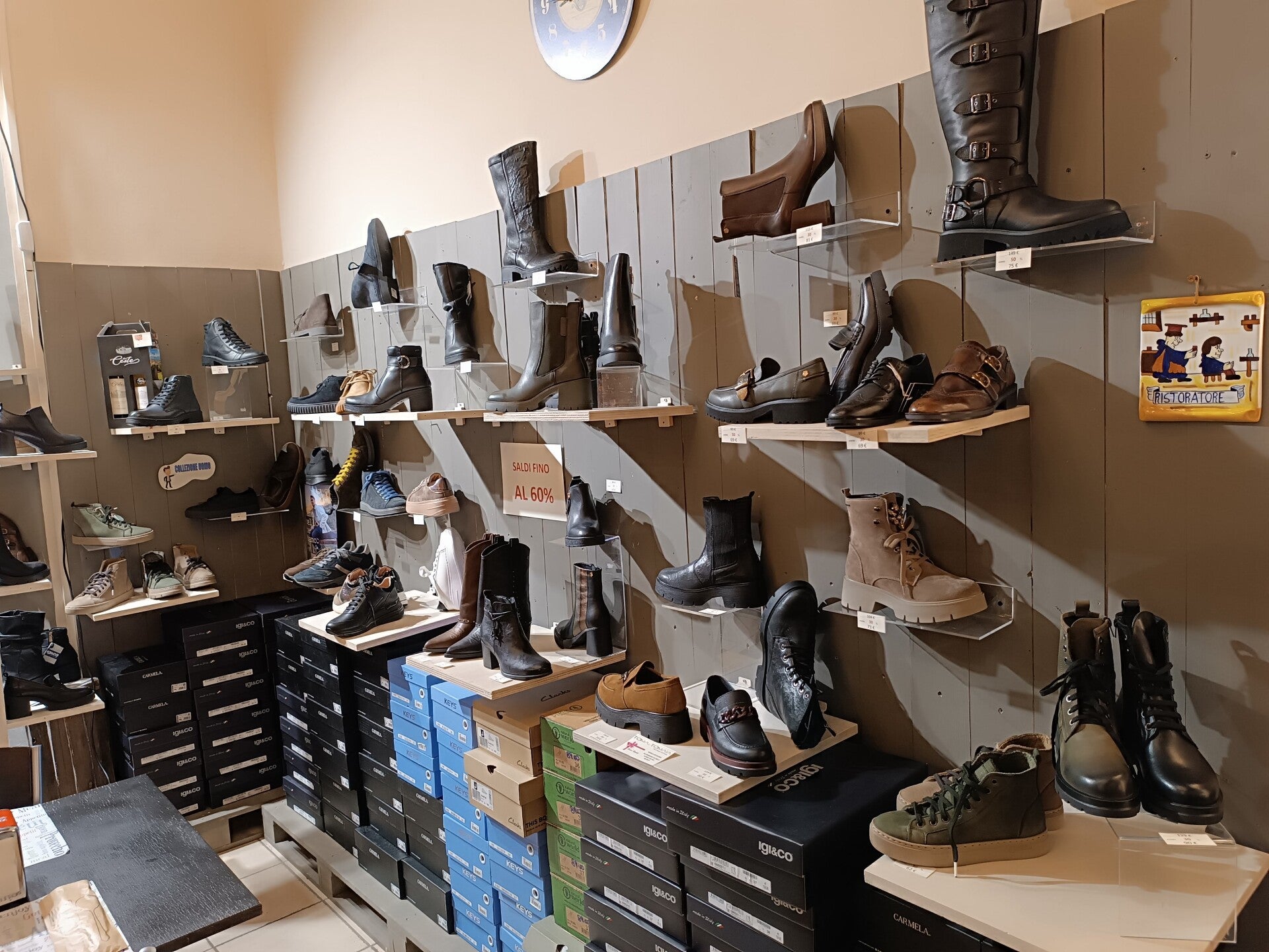 Mentre ti godi il tuo aperitivo, puoi esplorare la nostra selezione di scarpe, con marchi popolari come Bionatura e Key, oltre a una varietà di prodotti scontati.