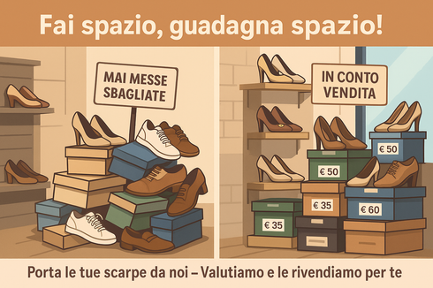 Oltre tanti articoli a prezzi scontati della nostra collezione abbiamo la possibilità di ritirare in conto vendita le scarpe che per qualche motivo non usi. Le scarpe devono essere nuove e puoi portrle in negozio per metterle in vendita nel nostro spazio dedicato.